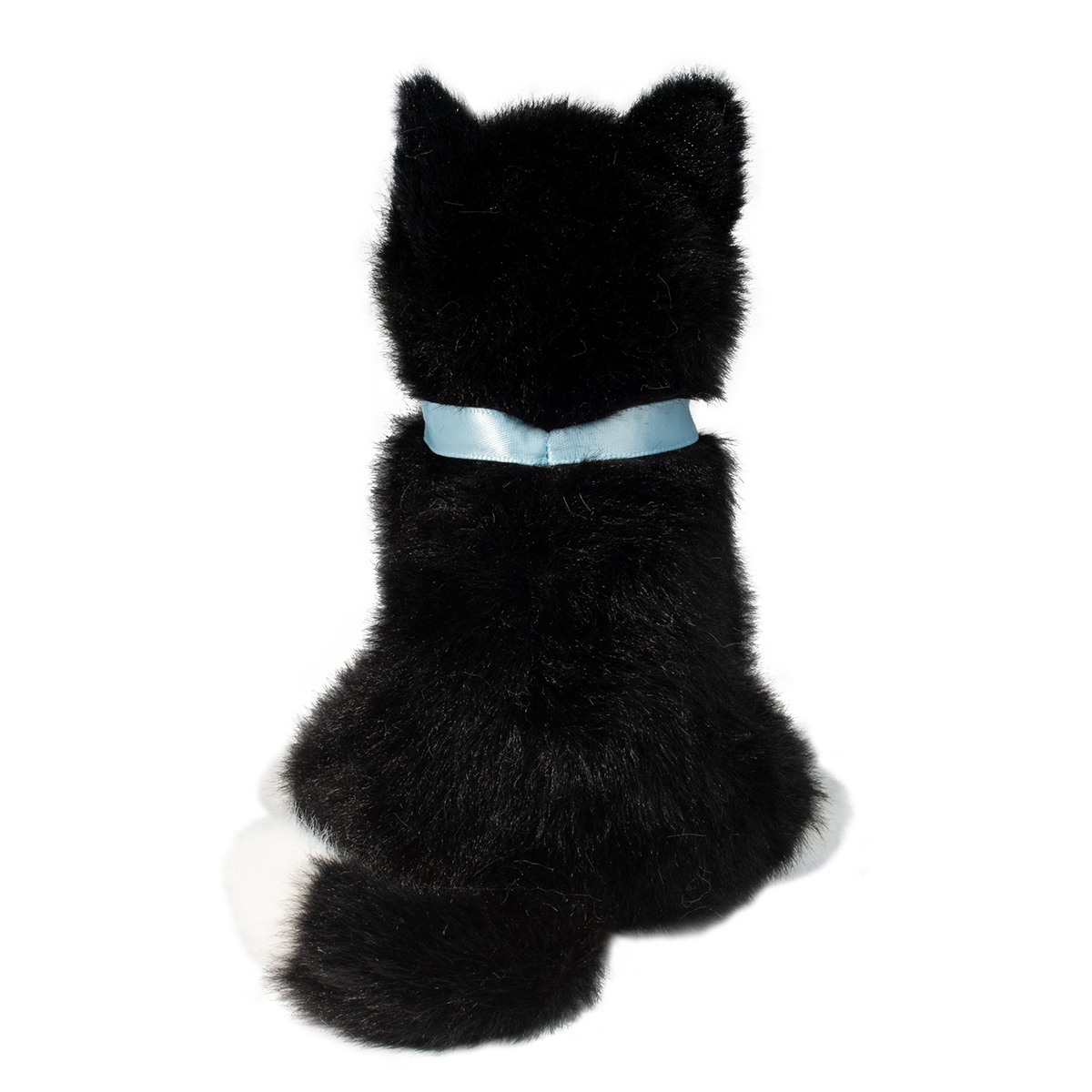 Featuring eye catching markings, our Mini Black & White Cat stuffed animal is an appealing way to tote your favorite animal with you on all your adventures. Sitting just 6” tall, this cuddly little kitten is designed to be an endearing handful of fun. Her ultra silky plush depicts black faux fur with elegant white markings on her face, chest, paws, and the tip of her tail. A small, pink nose and a baby blue satin collar completes her look. Fall in love with her sweet brown eyes, and treat yourself to a pocket sized mini meow with our irresistibly soft Black & White Cat stuffed animal!